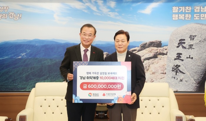 이번 위문금은 도내 최약계층 1만 세대에 세대당 6만 원씩 지원될 예정이다. 경남도는 지원금이 설 명절을 준비하는 어려운 이웃들에게 큰 도움이 될 것으로 기대했다.
