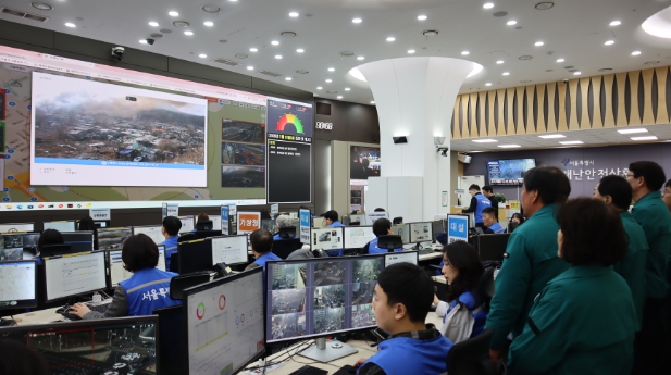 [파이낸셜경제=김예빈 기자] 16일 오전 5시경 강남구 개포동 구룡마을 4지구에서 원인 미상의 화재가 발생한 가운데 화재 대응 단계가 1단계에서 2단계로 격상되면서 서울특별시의회 도시안전건설위원회는 이날 오전 11시경 서울시 재난안전상황실을 긴급 방문하여 구룡마을 화재 진압 상황을 재난안전상황실 전면에 비치된 대형모니터를 통해 살핀 후 총력 대응을 주문했다.