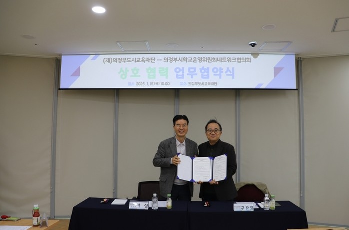 [파이낸셜경제=김기보 기자] 의정부도시교육재단은 1월 15일 의정부시학교운영위원회네트워크협의회와 ‘지역 내 교육 자원 및 교과연계형 도시교육 사업 발굴을 위한 업무협약’을 체결했다고 밝혔다.