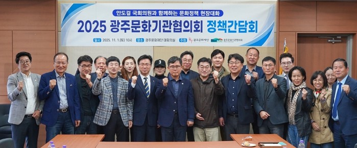 [파이낸셜경제=김예빈 기자] 광주문화기관협의회(간사기관: 광주문화재단, 대표이사 직무대행 전은옥)는 11월 1일 오전광주문화재단에서 안도걸 국회의원(더불어민주당, 동구남구을)을 초청해'2025 광주문화기관협의회 안도걸 국회의원과 함께하는 문화정책 간담회'를 개최했다.