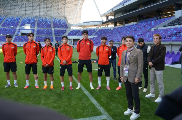 [파이낸셜경제=조성환 기자] 김진태 강원특별자치도지사(구단주)는 11월 3일 오후 3시, 일본 히로시마 에디온 피스 윙 스타디움을 방문해 아시아챔피언스리그 조별리그 원정경기를 앞두고 훈련 중인 강원FC 선수단을 격려하고 응원의 메시지를 전했다.