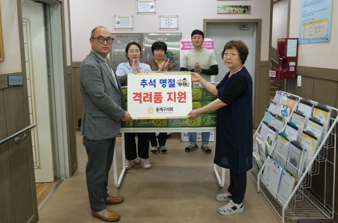 [파이낸셜경제=박영진 기자] 동래구의회는 추석 연휴를 앞둔 2일 지역 복지시설 5곳을 찾아 격려 물품을 전달하며 온정을 나눴다고 밝혔다.