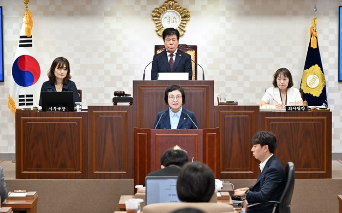 | ▲ 해운대구의회 원영숙 의원이 제289회 임시회 3차 본회의에서 5분 발언을 하고 있다. |