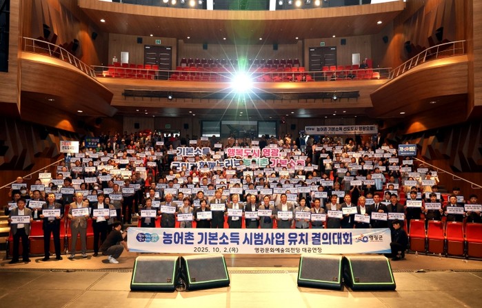 [파이낸셜경제=김예빈 기자] 영광군은 지난 10월 2일 오후 2시, 영광문화예술의전당 대공연장에서 '농어촌기본소득 시범사업 유치 결의대회'를 성황리에 개최했다.