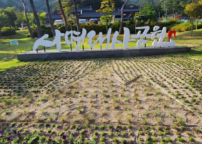 자수화단은 공원 입간판 앞 부지에 조성됐으며, 김천시 로고를 형상화한 디자인으로 꾸며졌다. 특히 붉은색과 분홍색이 어우러진 패랭이는 강렬한 시각적 포인트를 제공해 매년 봄부터 가을까지 대표적인 포토존으로 자리매김할 전망이다.