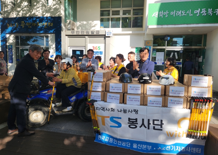 [파이낸셜경제=김예빈 기자] 한국교통안전공단 울산본부는 23일 북구 농소2동 행정복지센터에 전동이동보조기기 이용자를 위한 안전헬멧 40개를 전달했다.