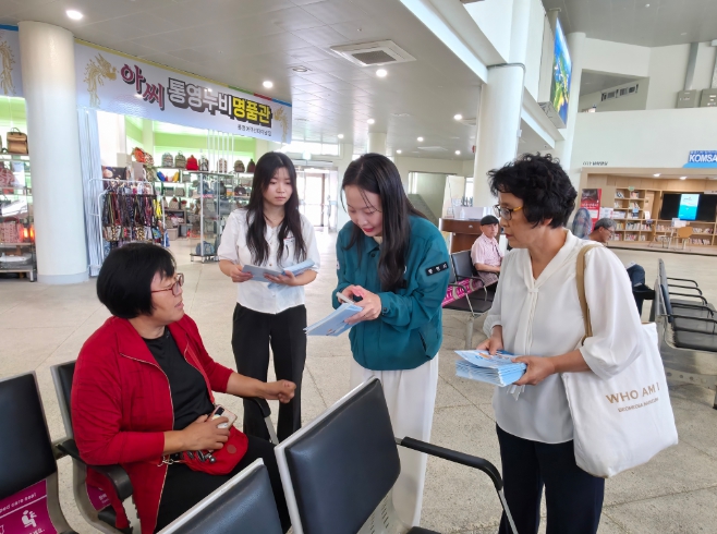 23일 도는 통영시와 함께 통영항 여객선터미널에서 홍보물 등을 배부하면서 섬 주민들이 쉽게 알 수 있게 사업내용을 설명했다.