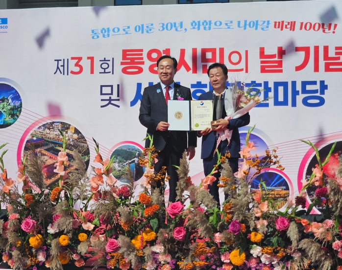 [파이낸셜경제=김예빈 기자] 통영시는 지난 1일 통영공설운동장에서 개최된‘제31회 통영시민의 날’기념식 행사에서 제20회 통영시 문화상 수상자를 시상했다.