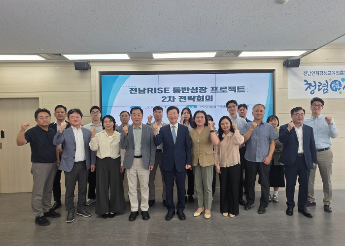 [파이낸셜경제=김예빈 기자] 전남RISE센터는 23일 전남인재평생교육진흥원에서 과제별 5개 대학 담당자 및 전남도 관계자 등이 참석한 가운데 ‘전남RISE 동반성장 프로젝트 2차 전략회의’를 개최했다.