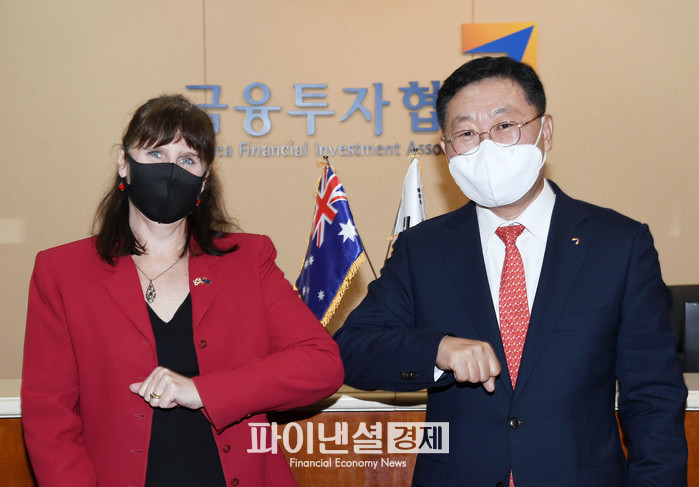 올해는 한국과 호주 수교 60주년으로 나재철 회장과 캐서린 레이퍼 대사는 금투업계에서도 양국간 우호 관계를 더욱 강화해 나가자는 결의를 다졌다 .