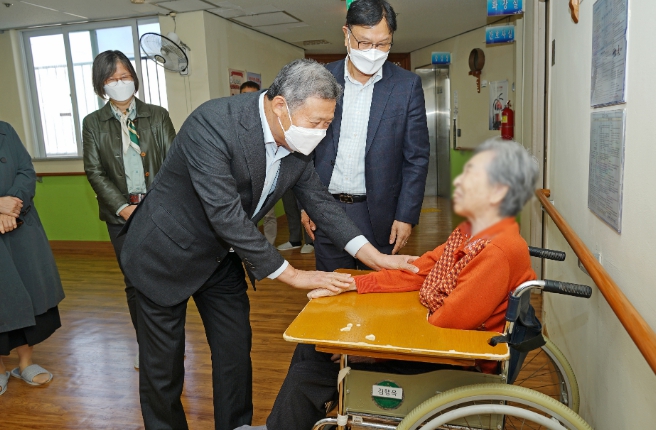 이어 생활 시설 내부를 돌아본 후 시설에서 생활하는 어르신들을 찾아 직접 인사하며 따뜻한 마음을 전했다.