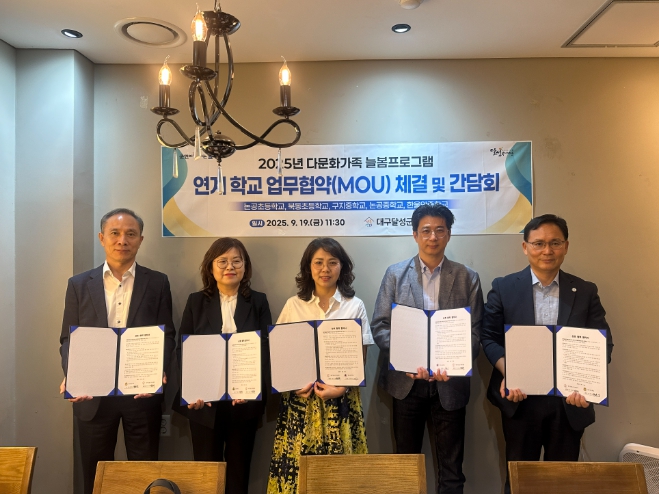 [파이낸셜경제=김지훈 기자] 달성군가족센터는 지난 19일 달성군 교육특구사업 중 하나인 ‘다문화가족 늘봄프로그램’ 추진을 위해 관내 초등·중학교 4개교와 업무협약(MOU)를 체결했다.