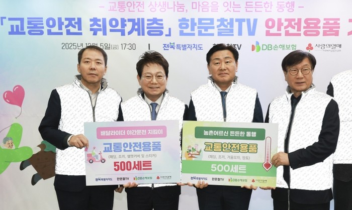 [파이낸셜경제=김예빈 기자] 전북특별자치도가 5일 도청에서 한문철TV와 DB손해보험과 함께 교통안전 취약계층을 위한 안전물품 기탁식을 가졌다.