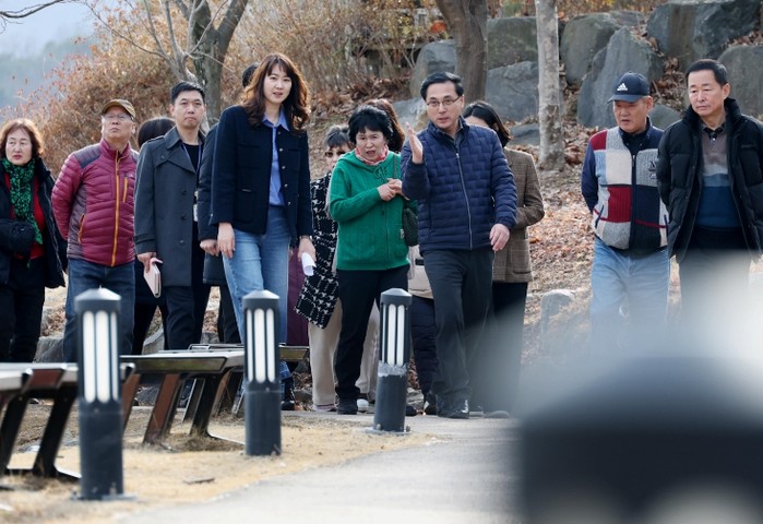 먼저 판암근린공원에서는 고사목 제거, 조명 정비, 미끄럼 방지를 위한 야자매트 설치 등 안전·편의 개선 방안을 중점 점검했으며, 배수로 관련 민원에 대해서는 현재 추진 중인 보완 공사 계획을 설명하고 향후 추가 정비 방향에 대한 주민 의견을 수렴했다.