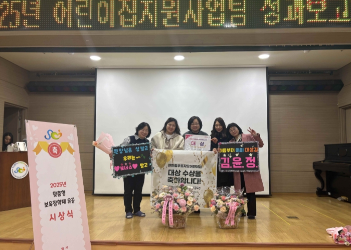 대상을 수상한 국공립 센트럴푸르지오어린이집은 ‘함께 읽고 함께 자라다’를 주제로, 기관 내에서 지속 추진해 온 장학활동 과정과 성과를 공모에 제출했다. 교직원들은 놀이 지원 역량 강화를 위한 학습공동체를 구성해 협력적으로 학습하고, 영아 놀이와 일상 경험 속에서 배움의 과정을 읽고 확장·지원하는 장학활동을 지속해 왔다. 이러한 노력이 보육 현장의 전문성 강화로 이어졌다는 점에서 높은 평가를 받았다.