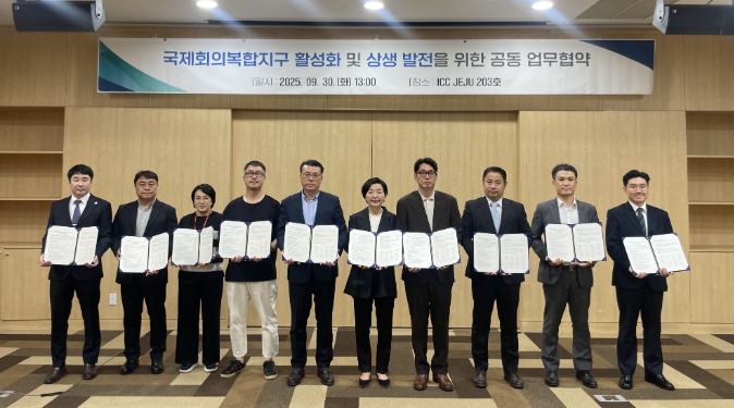 [파이낸셜경제=김영란 기자] 제주국제컨벤션센터(대표이사 이선화, 이하 ICC JEJU)는 9월 30일(화) 신라호텔 제주, 롯데호텔 제주, 파르나스호텔 제주 등 제주국제컨벤션센터 주변 숙박 및 관광시설 11곳과 ‘제주 국제회의복합지구 활성화 및 상생 발전을 위한 업무협약’을 체결했다.