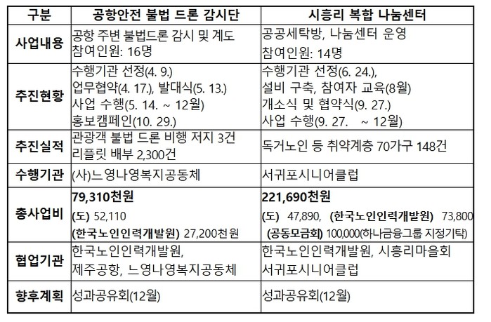 올해는 ㈔느영나영복지공동체, 한국공항공사 제주지역본부와 협력해 공항 주변 드론 비행금지 구역을 순찰·계도하는 ‘공항안전 불법드론 감시단’을 운영했다. 이 사업은 보건복지부 주관 ‘2026년 전국확산 모델 아이템’으로 선정되는 성과를 거뒀다.