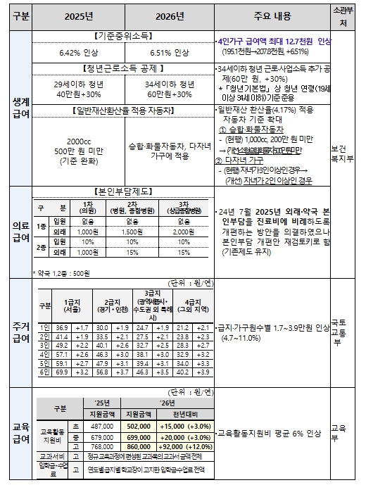 | ▲ 2026년 기초생활보장 주요 변경사항 |