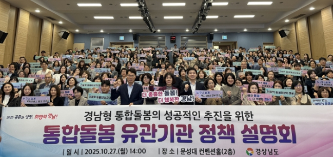 [파이낸셜경제=김예빈 기자] 경상남도(도지사 박완수)는 27일 오후 2시 문성대학교 컨벤션홀에서 ‘경남형 통합돌봄 유관기관 정책 설명회’를 개최했다고 밝혔다.