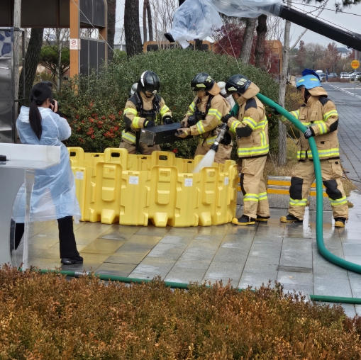 [파이낸셜경제=김예빈 기자] 나주소방서는 11월 25일 나주 혁신도시에 위치한 한국전력공사(KEPCO) 본사 데이터센터에서 리튬이온배터리 화재 발생을 가정한 합동소방훈련을 실시했다고 밝혔다.