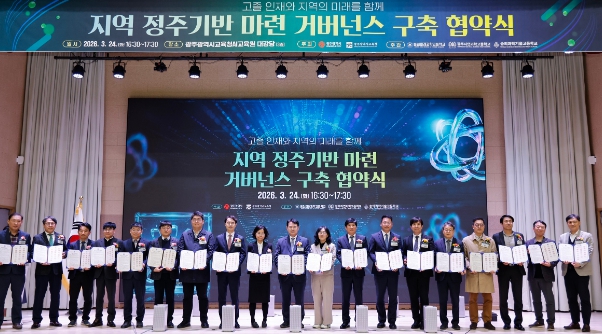 [파이낸셜경제=김예빈 기자] 광주시교육청과 광주시는 24일 광주AI교육원 대강당에서 이정선 광주시교육감, 김기숙 광주시 교육청년국장 등이 참석한 가운데 ‘고졸 인재와 지역의 미래를 함께, 지역 정주기반 마련 거버넌스 구축 협약식’을 개최했다.