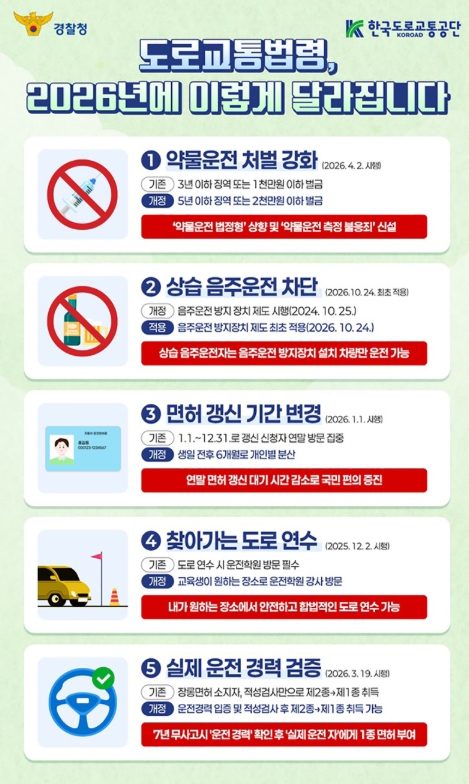 [파이낸셜경제=김영란 기자] ① 약물운전 처벌 강화(2026.4.2. 시행)