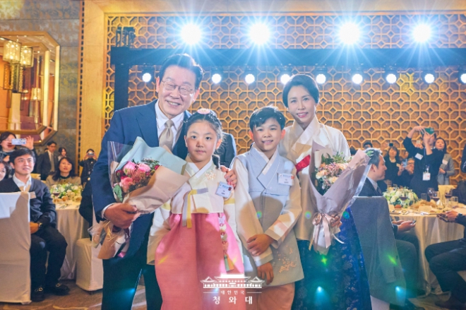 한편 "10살 된 딸이 대통령님이 잠은 잘 주무시는지 궁금해한다"는 한 참석자의 질문에 이 대통령은 "잠은 충분히 잔다고 전해달라"고 해 웃음을 안겼다.