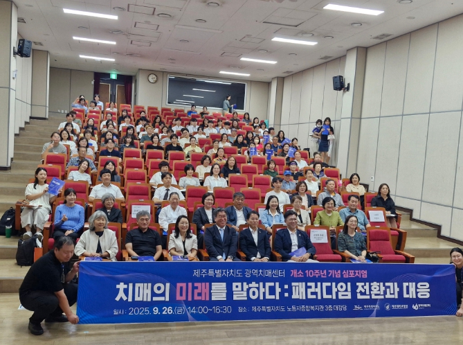 [파이낸셜경제=김영란 기자] 제주특별자치도광역치매센터(센터장 박준혁)는 지난 9월 26일 제주특별자치도 노동자종합복지관 3층 대강당에서 개소 10주년 기념 치매관리 심포지엄을 개최했다. 이번 심포지엄은 지난 10년간의 치매관리 성과를 공유하고, 급격히 변화하는 치매 진단·치료 기술과 돌봄 패러다임을 점검하며, 지역사회 중심의 새로운 대응 전략을 모색하는 것을 목표로 했다.