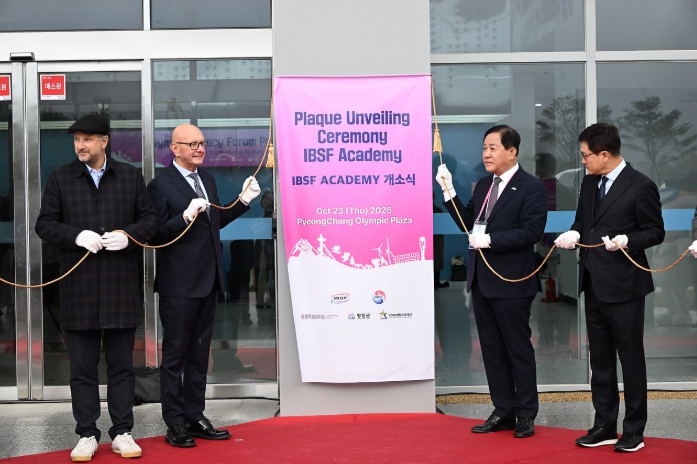 [파이낸셜경제=조성환 기자] 2025 세계올림픽도시연맹 총회가 한창 진행 중인 평창올림픽플라자에서는 오늘(10월 23일) 오후, 이보 페리아니(Ivo Ferriani) IBSF(국제봅슬레이스켈레톤연맹) 회장과 전찬민 IBSF 부회장 겸 KBSF(대한봅슬레이스켈레톤연맹) 회장, 최성희 문체부 체육협력관, 심재국 평창군수 그리고 원윤종 등 국내외 썰매 종목 관계자와 선수들이 참석한 가운데 'IBSF 아카데미 평창사무소 개소식'이 열렸다.
