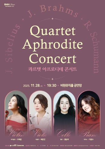[파이낸셜경제=김지훈 기자] 비원뮤직홀에서는 BMH 클래식 시리즈로 정통 클래식 공연을 심도 있게 감상할 수 있는 콰르텟 아프로디테 콘서트를 개최해 지역민들에게 고품격 문화를 선사한다.