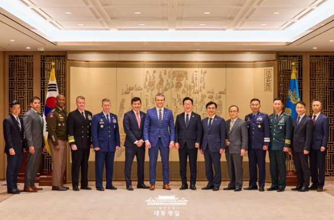 이 대통령은 헤그세스 장관의 취임 이후 첫 한국 방문을 진심으로 환영하면서, 한반도를 넘어 세계 평화와 안정을 위해 헌신하고 있는 헤그세스 장관과 케인 합참의장을 비롯한 미국 국방·군사 리더십의 노고를 치하했다.
