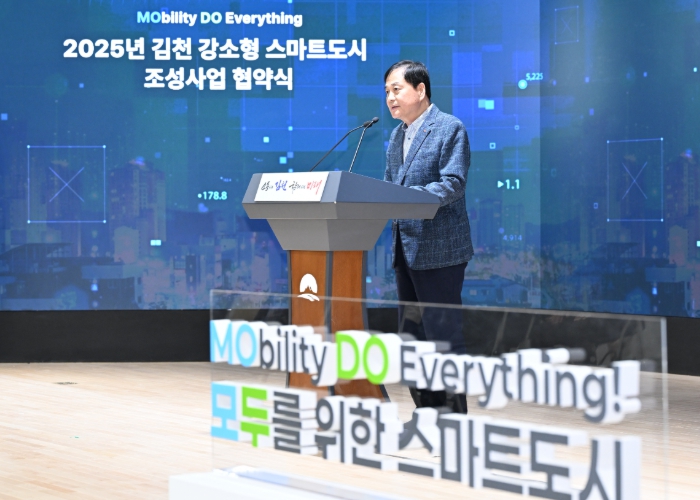 김천시는 지난 6월 국토교통부가 주관하는‘2025년 강소형 스마트도시 조성사업’공모에 선정되어 8월 국토교통부와 협약을 맺었다. 오늘 행사는 배낙호 김천시장의 환영사, 교통안전공단 정용식 이사장의 축사에 이어 스마트도시 조성사업 발표, 업무 협약 체결 순으로 진행됐다.