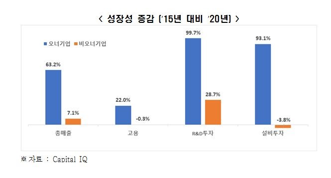 오너기업 경영성과 모든 방면에서 비오너기업보다 우세(’20년)