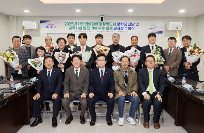 이어, 대한건설협회 충청북도회(회장 유정선)는 충북교육청에 1,000만 원의 장학금을 전달했다.