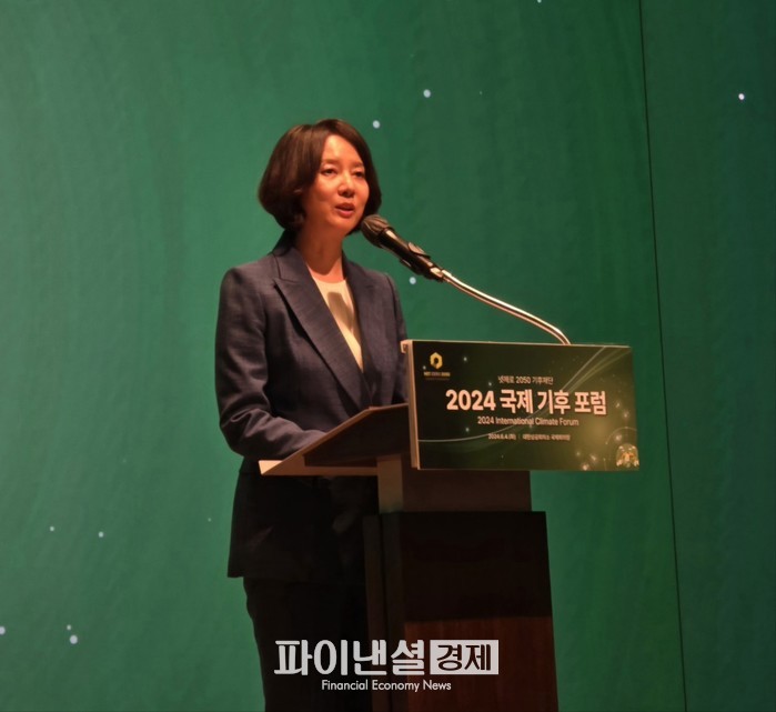 | ▲ 2024 국제기후포럼 축사하는 이영 전 중소벤처기업부 장관 |