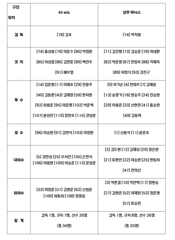 [파이낸셜경제=금윤지 기자] 10월 1일(수) 오후 7시 고척스카이돔에서 개최되는 2025 KBO 퓨처스리그 챔피언결정전에서 맞붙는 KT와 상무의 출장자 명단이 발표됐다.