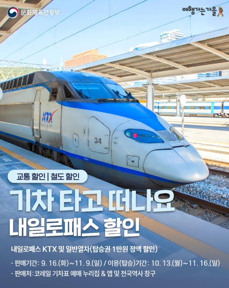 - 판매기간: 9.16.(화)~11.9.(일) / 이용(탑승)기간: 10.13.(월)~11.16.(일)