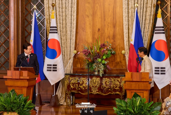 [파이낸셜경제=김예빈 기자] 필리핀을 국빈 방문한 이재명 대통령은 3일(현지시간) 페르디난드 로무알데즈 마르코스 주니어 대통령과 가진 정상회담에서 한-필리핀 협력을 조선·원전·인공지능(AI) 등 신성장 분야로 확대하기로 합의했다.