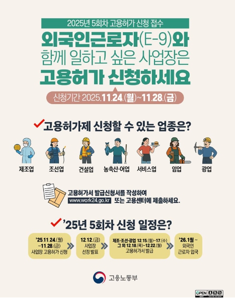 '25.11.24.(월)~11.28.(금): 사업장 고용허가 신청