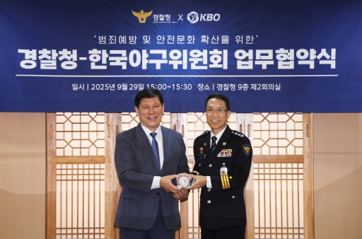[파이낸셜경제=금윤지 기자] KBO와 경찰청(청장 직무대행 유재성)은 9월 29일(월) 경찰청에서 업무 협약을 체결했다.