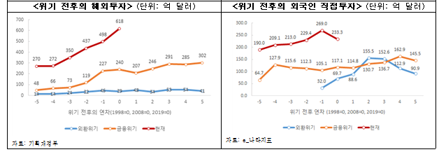 한편 현 외환보유고 수준에서는 당장 외환위기의 가능성은 낮다고 평가하면서도 경제위기가 장기화될 경우에는 외환위기의 가능성이 높아질 수 있다고 분석했다. 조경엽 실장은 “수출부진 장기화로 경상수지 적자가 쌓이고 경제 펀더맨틀 약화가 지속되면서 자본유출이 확대된다면, 외국투자자들의 심리적 불안이 증폭되면서 외환보유고가 부족하게 될 수도 있다”고 지적했다. 이에, 경제위기 장기화에 대비하여 미국과의 통화스왑 확대는 물론 미국과 상시적·무제한 통화스왑을 맺고 있는 국가들(일본, 영국, 스위스 등)과의 통화 스왑 체결이 필요하다고 주장하였다.