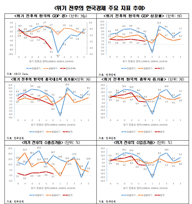 한국의 경우에도 반시장적인 소득주도성장으로 경제체력이 크게 약화된 상태이므로 코로나19 위기 종식 이후에도 경제의 급반등을 기대하기는 어렵다고 주장했다. 보고서는 실제 GDP갭(실질성장률 – 잠재성장률)이 지속적으로 하락하여 2019년에 이미 –2.1%p까지 하락한 상태이며 이는 글로벌 금융위기의 충격이 반영된 당시 GDP갭 –1.2%p(2009년)보다도 낮다는 점을 지적하였다. 또한 지금의 위기가 성장률로 반영되면 2020년 GDP갭은 훨씬 더 추락할 것이라고 강조하였다.