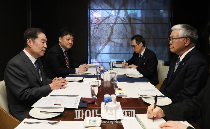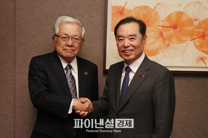 [파이낸셜경제=전병길 기자] 김병준 전경련 회장직무대행이 20일 소공동 롯데호텔에서 열린 조찬간담회에 참석해 고가 노부유키 노무라홀딩스 명예고문(前 경단련 심의원회 의장)과 양국간 경제협력 강화 방안에 대해 논의했다.