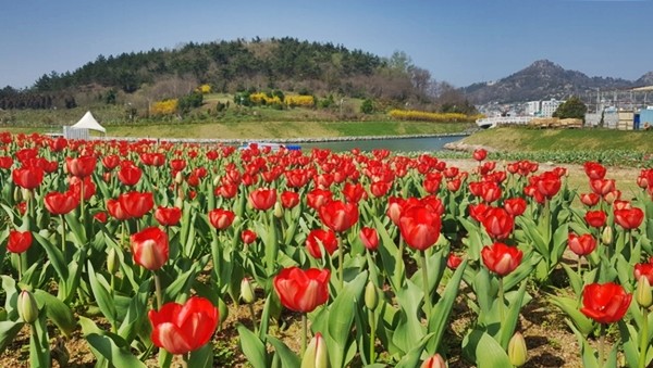 시는 봄나들이 나온 시민과 관광객에게 봄의 생기를 느낄 수 있는 볼거리를 제공하기 위해 삼학도 중앙공원에 튤립 15만본과 수선화‧꽃잔디 등 봄꽃 12만본을 식재했다.
